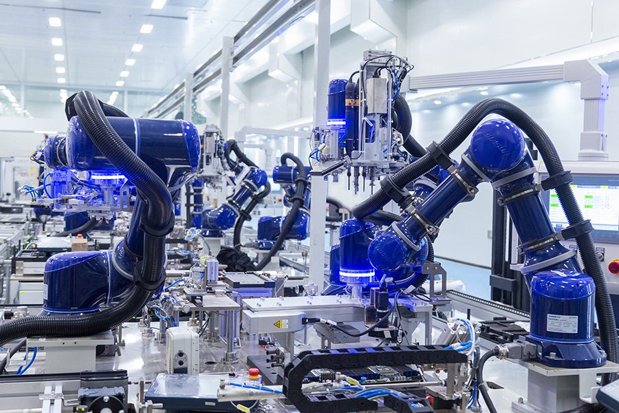 福建省海峽星云智能制造基地依據(jù)智能工廠理念打造,適合服務(wù)行業(yè)多品種小批量的生產(chǎn)模式,同時兼顧該類產(chǎn)品迭代快的特點。由立體倉庫、AGV、傳輸線及WMS,物料調(diào)度系統(tǒng)構(gòu)成的智能物流系統(tǒng)、由協(xié)作機器人、工業(yè)機器人和視覺、力等構(gòu)成的智能裝配檢測系統(tǒng),由ERP、PDM、MES、SCADA、ANDON等構(gòu)成的信息及運營管理系統(tǒng),構(gòu)成整個智能化生產(chǎn)系統(tǒng)。該系統(tǒng)對傳統(tǒng)計算機通信行業(yè)的自動化裝配具有借鑒和指導(dǎo)意義。