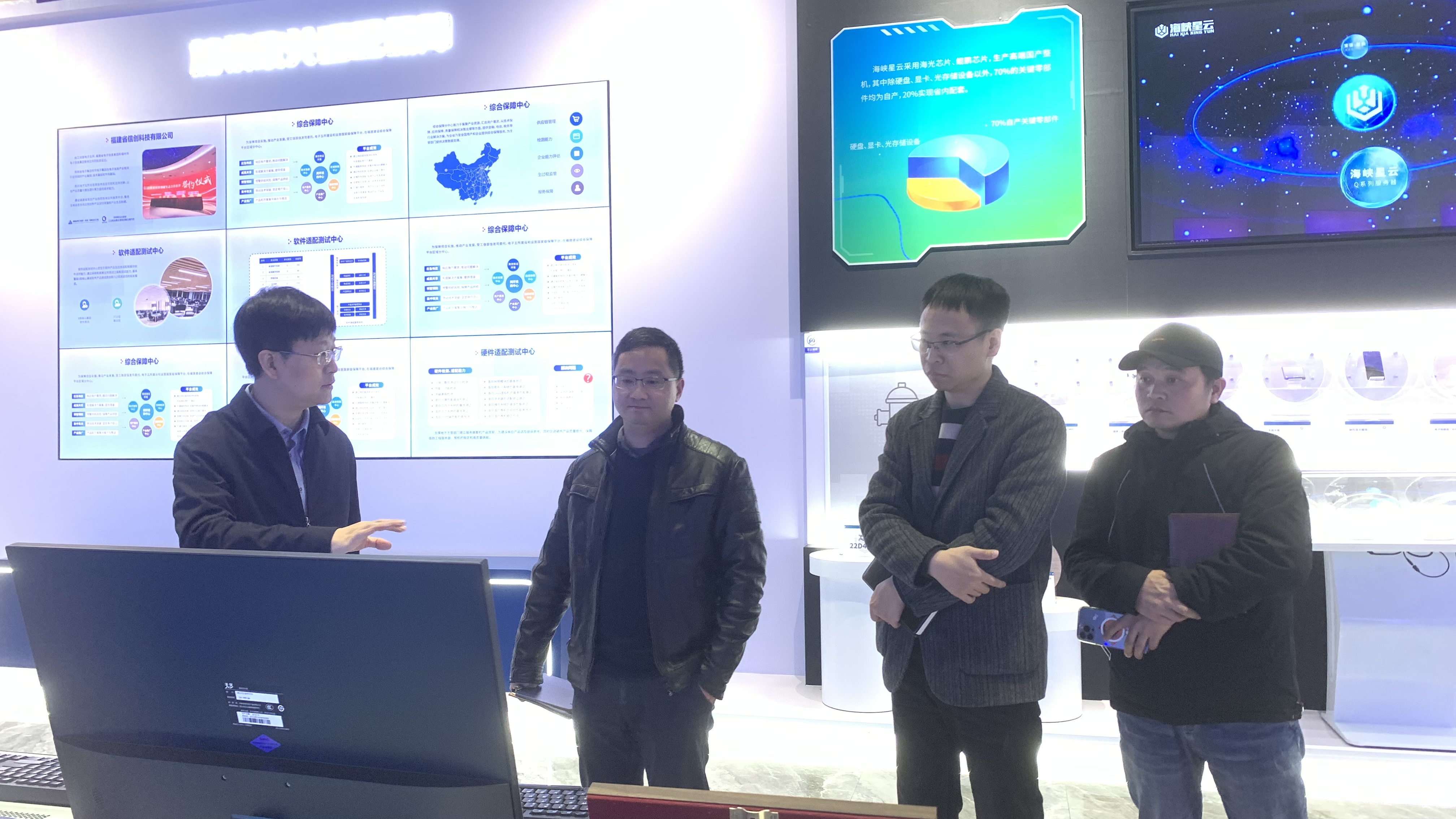調(diào)研組一行參觀了省電子信息集團信創(chuàng)展廳及自動化生產(chǎn)線,了解了省電子集團二十多年來的發(fā)展歷程,助力數(shù)字福建建設(shè)及國產(chǎn)化電子產(chǎn)品制造領(lǐng)域的創(chuàng)新成果,集團業(yè)務(wù)板塊及一體化服務(wù)。隨后調(diào)研組與相關(guān)人員就信創(chuàng)實施方案和展廳規(guī)劃進行了座談。
