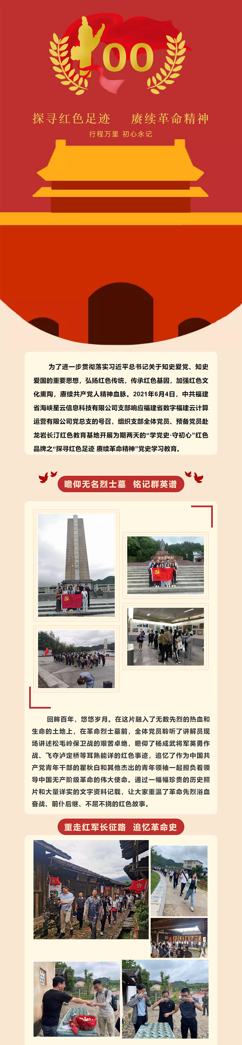 探尋紅色足跡 賡續(xù)革命精神 ——中共福建省海峽星云信息科技有限公司支部赴長汀紅色教育基地開展黨史學習教育